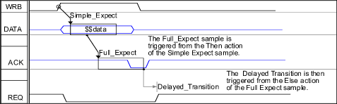 Block the triggering process, and hence the entire diagram if everything is using the same clock. The blocking option can be turned on and off for each Sample individually. Marker Features Timing Diagram Markers can be added to specify actions to be taken by the transaction during execution. These actions can include signifying the end of a transaction, waiting for a condition, looping, or executing algorithmic HDL code. -