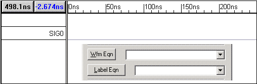 Waveform and Label Equations Our tools provide the ability to generate signal waveforms from Temporal Equations and automatically label those waveforms using State Label equations. These features augment the drawing environment, and provide a quick way to generate signals without having to draw each individual signal transition. They also provide a way to generate signals that have precise edge placement.  Temporal Equations Temporal equations provide a quick way to generate signals that have a known pattern. Below is an example of a waveform equation that will generate 200 waveform segments, alternating in length between 50 and 100 ns. Waveform Equation: (50 =V 100 = V)*100 Generate a 50 ns Valid transition, followed by 100 ns Valid transition, repeat 100 times. - A Waveform Equation is a list of space-separated, time value pairs in the form: Time_value[units]=State_value (e.g. 10ns=Z).